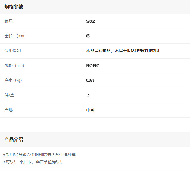 產(chǎn)品名字:世達(dá)6.3MM系列65MM長(zhǎng)雙頭旋具頭PH2-PH2