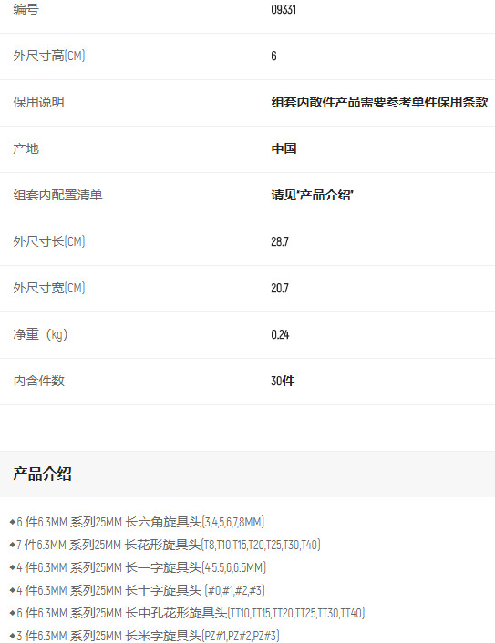產(chǎn)品名字:世達(dá)30件6.3系列手動旋具頭組套