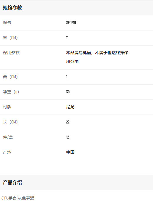 產(chǎn)品名字:世達8"PU手套(灰色掌浸)