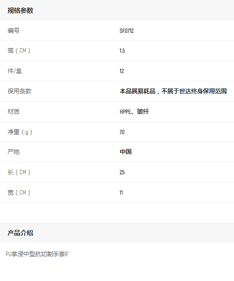 產(chǎn)品名字:世達(dá)PU掌浸中型抗切割手套9”