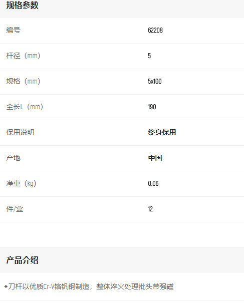 首頁>產(chǎn)品中心>螺絲批>一字螺絲批>世達A系列一字批5x100mm