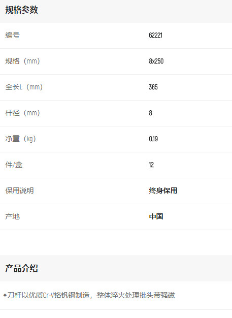產(chǎn)品名字:世達(dá)A系列一字批8*250mm