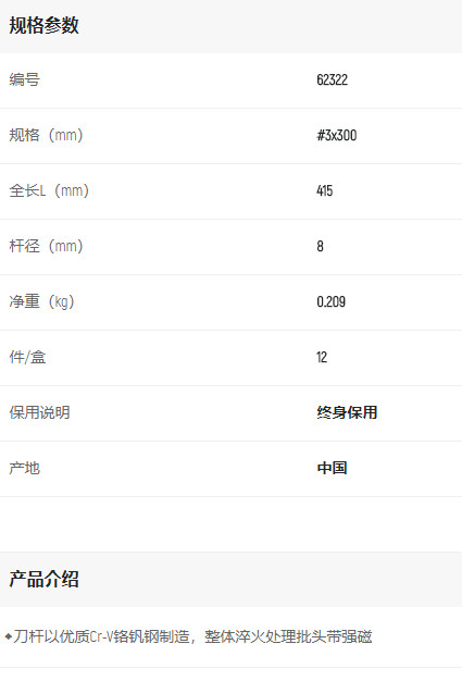 首頁>產品中心>螺絲批>十字螺絲批>世達A系列十字批#3*300mm