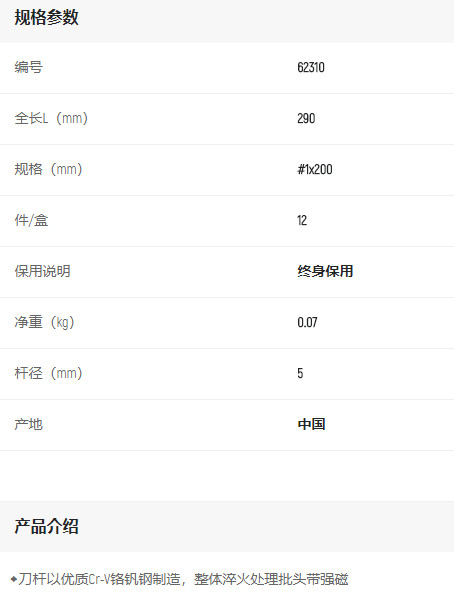 產(chǎn)品名字:世達(dá)A系列十字批#1*200mm