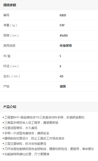 產(chǎn)品名字:世達(dá)G系列雙色柄十字形螺絲批3*300
